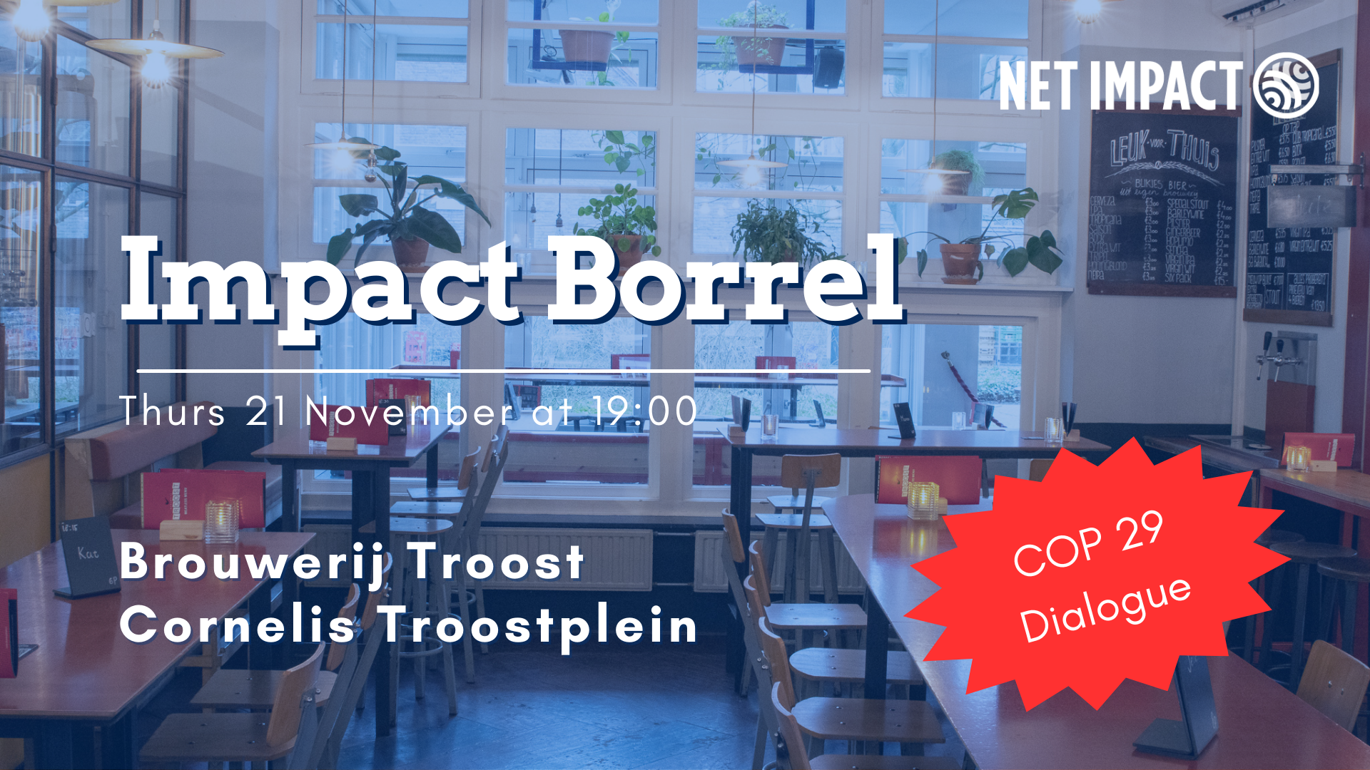 Join fellow Net Impact Amsterdam members for drinks at Brouwerij Troost in De Pijp, Amsterdam.You're invited to the Net Impact Amsterdam 'Impact Borrel'!All are welcome. Join us for a fun networking evening with fellow Net Impact members. The theme of the evening will be COP 29.About Net Impact AmsterdamNet Impact Read more…